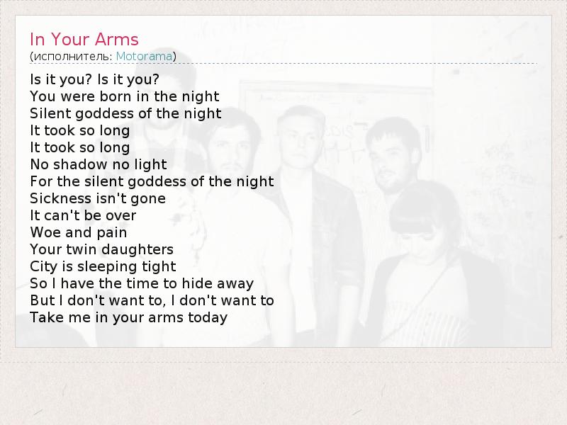 А как ты думаешь, о чем песня "In Your Arms" ?