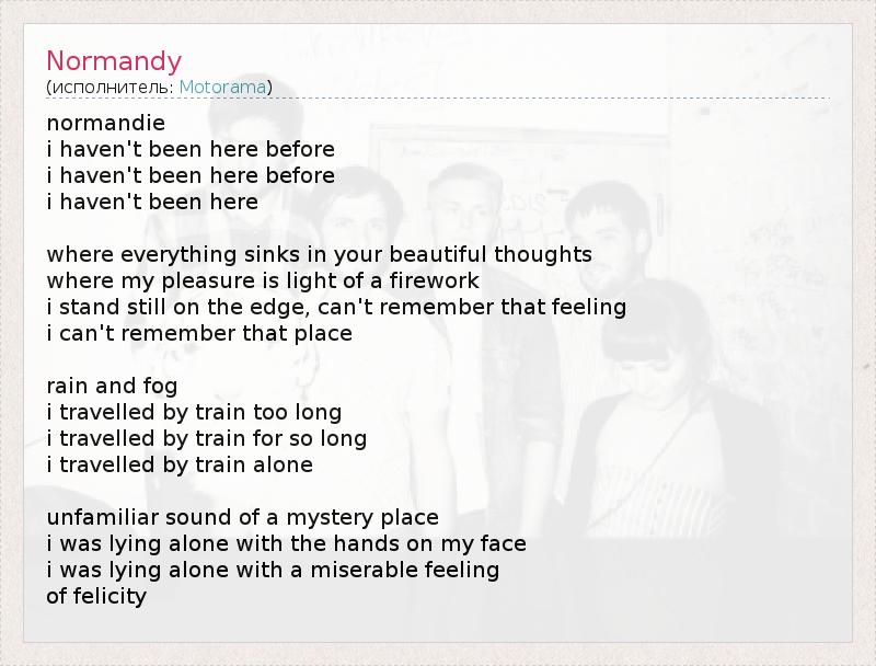 Это интересно:Motorama – группа из г.Ростов-на-Дону, Россия, образованная в 2006 году, играющая легковесный англоязычный post-punk и twee pop. Выступает в крупных городах отечества, съездила в длинный-предлинный тур по Европе.С 2007 по 2015 вышло 4 сингла, 3 EP и 3 альбомa. http://www.wearemotorama.comУчастники Motorama:Влад Паршин (Vladislav Parshin) - guitar, vocalsМаксим Поливанов (Maksim Polivanov) - guitarИрина... продолжение