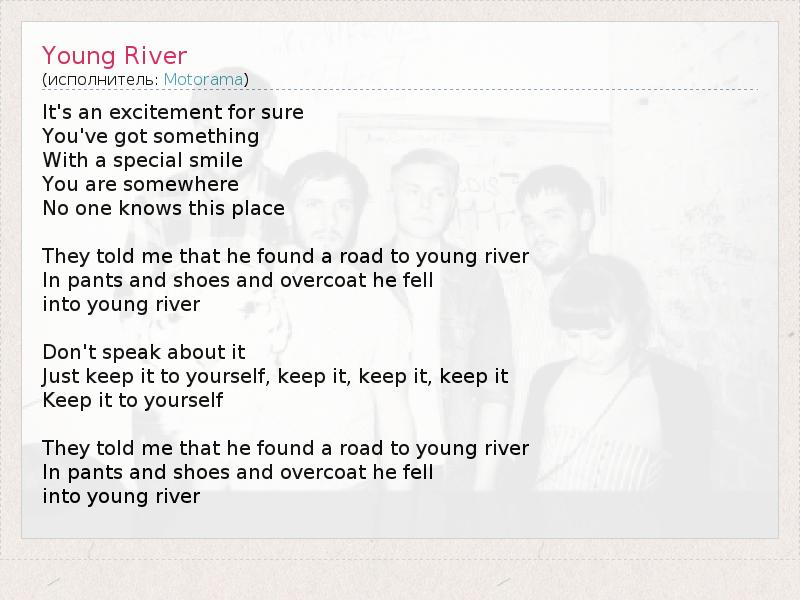 Это интересно:Motorama – группа из г.Ростов-на-Дону, Россия, образованная в 2006 году, играющая легковесный англоязычный post-punk и twee pop. Выступает в крупных городах отечества, съездила в длинный-предлинный тур по Европе.С 2007 по 2015 вышло 4 сингла, 3 EP и 3 альбомa. http://www.wearemotorama.comУчастники Motorama:Влад Паршин (Vladislav Parshin) - guitar, vocalsМаксим Поливанов (Maksim Polivanov) - guitarИрина... продолжение