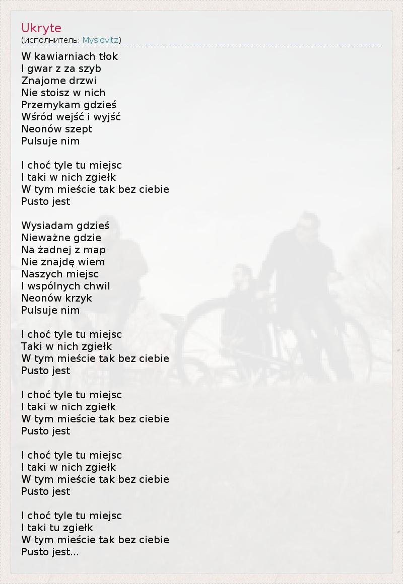 Это интересно:Myslovitz — польская рок-группа образована в 1992 в городе Мысловице. Название группы — это немецкое название данного города.Артур Ройек образовал группу в 1992 году. Она завоевала несколько призов на фестивалях, после чего группа подписала контракт с издательством MJM Music Polska. В 1995 году группа выпустила альбом Myslovitz, хорошо принятый критиками. Продюсером был Ян Гаррис, ранее известный по сотрудничеству... продолжение
