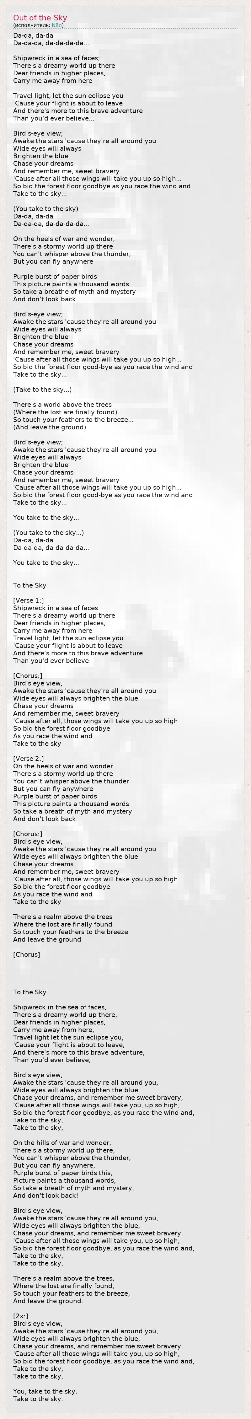А как ты думаешь, о чем песня "Out of the Sky" ?