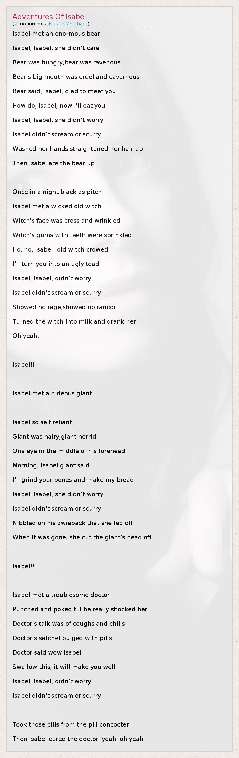 А как ты думаешь, о чем песня "Adventures Of Isabel" ?