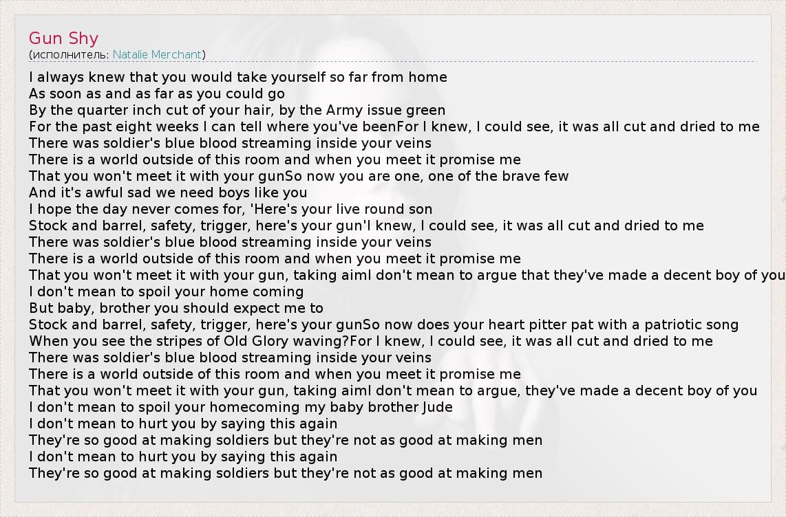 А как ты думаешь, о чем песня "Gun Shy" ?