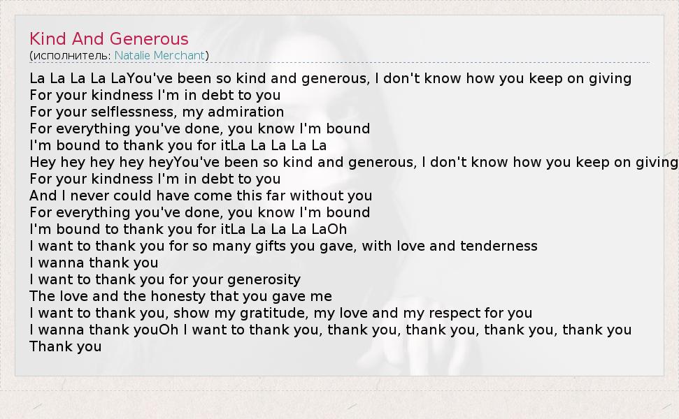 А как ты думаешь, о чем песня "Kind And Generous" ?