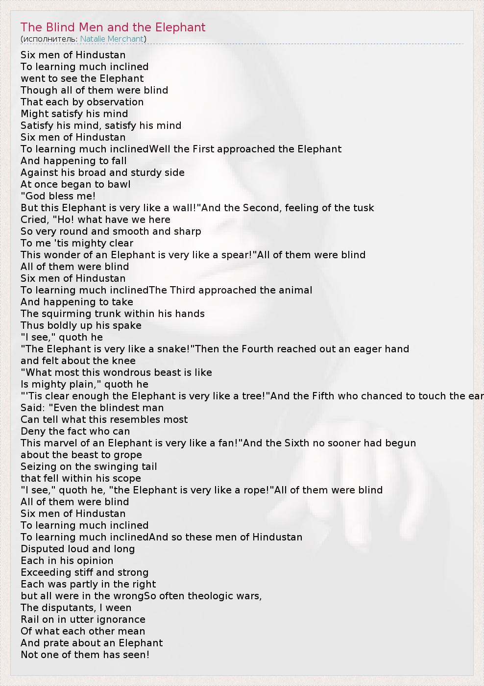 А как ты думаешь, о чем песня "The Blind Men and the Elephant" ?