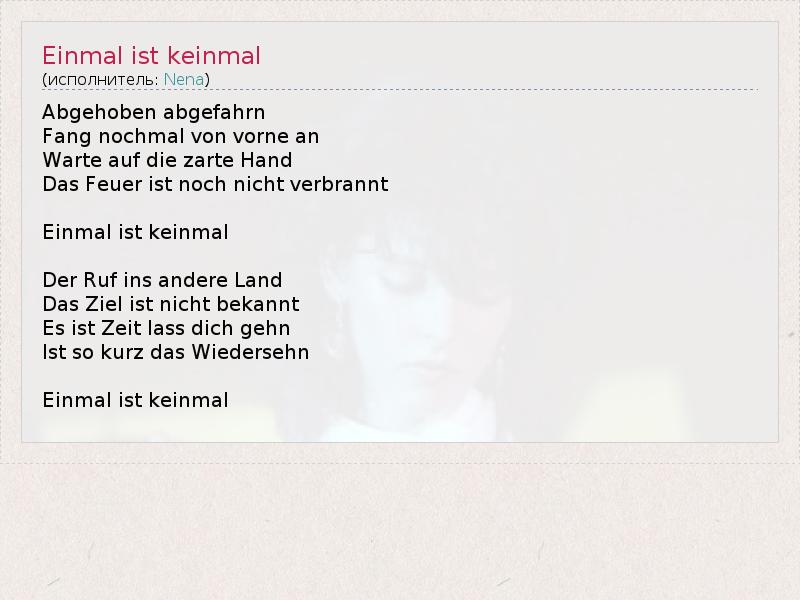 А как ты думаешь, о чем песня "Einmal ist keinmal" ?