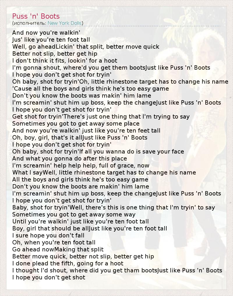 А как ты думаешь, о чем песня "Puss 'n' Boots" ?