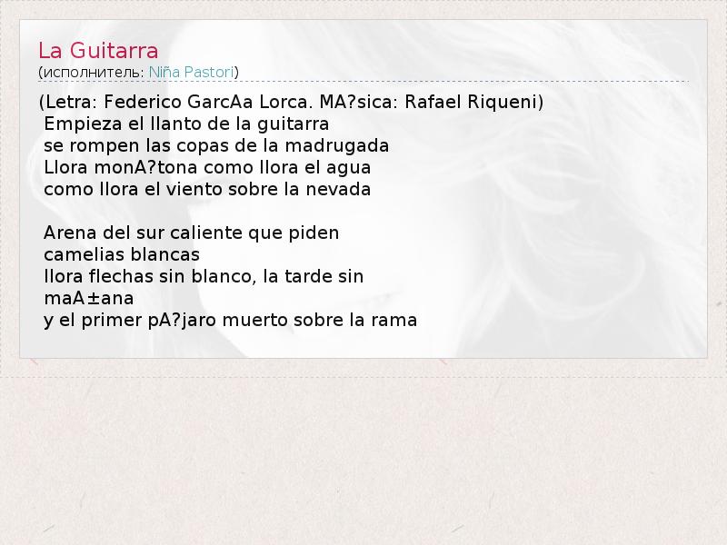 (Letra: Federico GarcAa Lorca. MA?sica: Rafael Riqueni)
