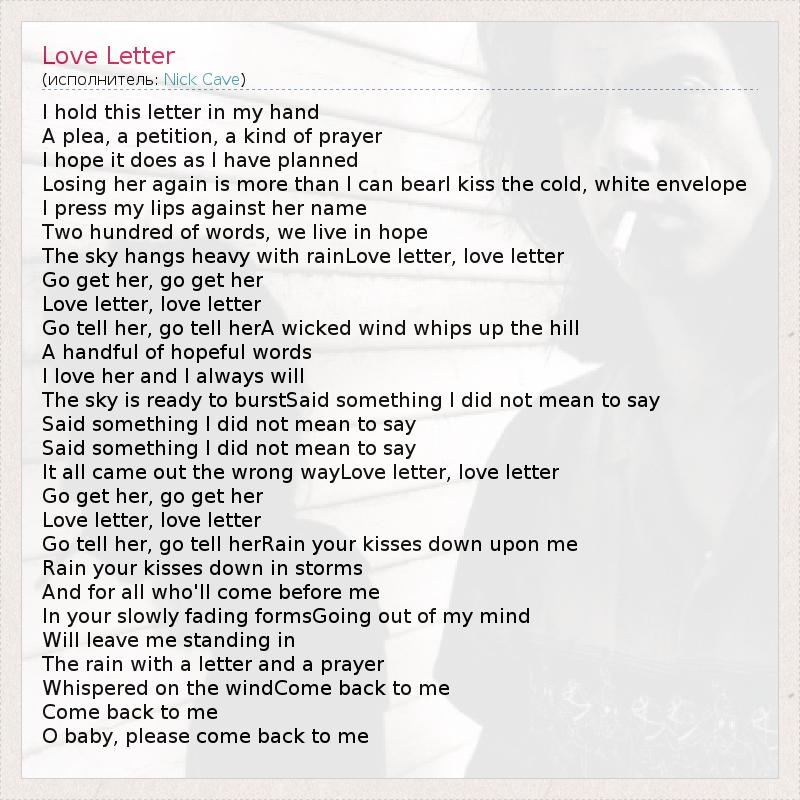 Losing her again is more than I can bearI kiss the cold, white envelope
