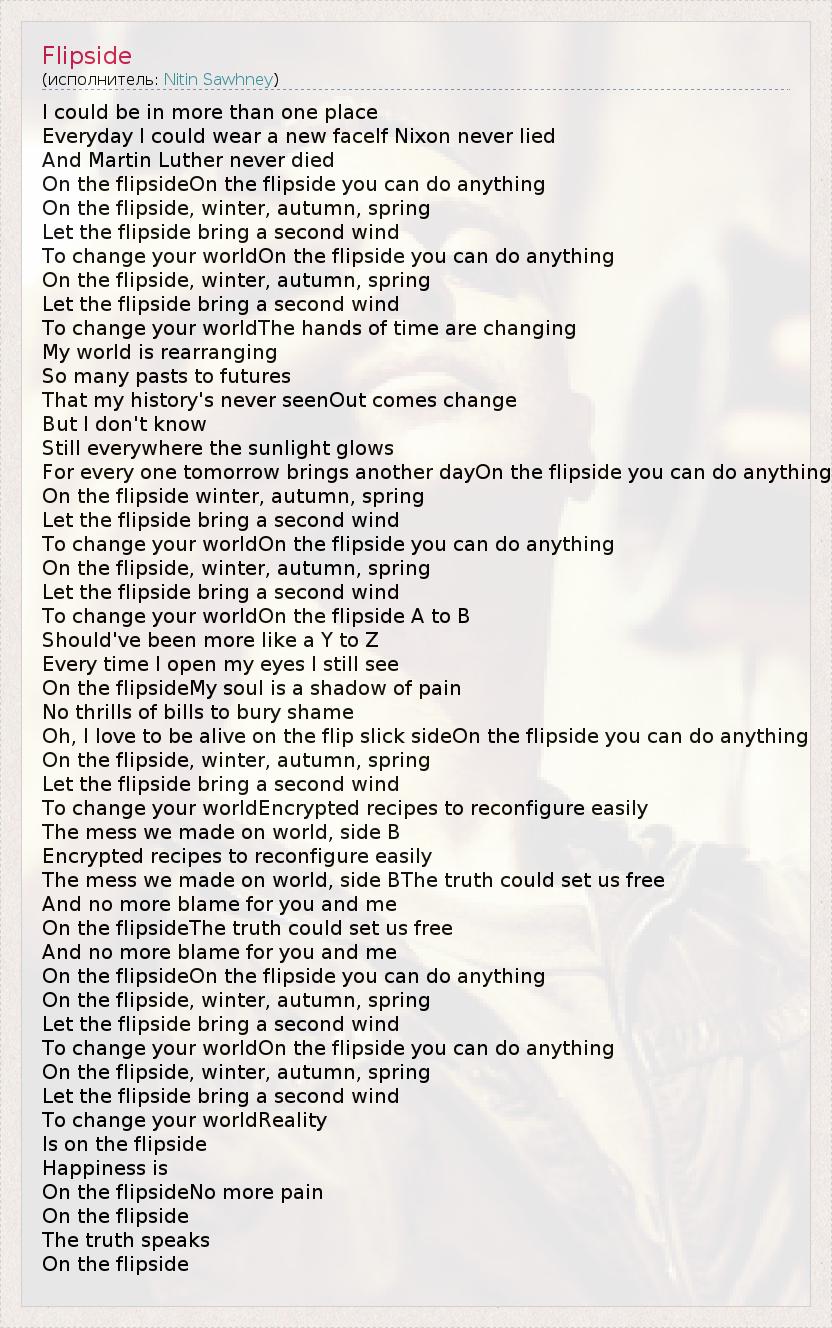 Oh, I love to be alive on the flip slick sideOn the flipside you can do anything