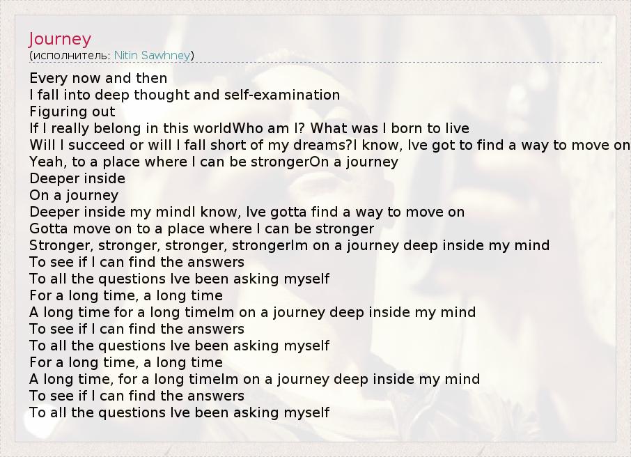 А как ты думаешь, о чем песня "Journey" ?