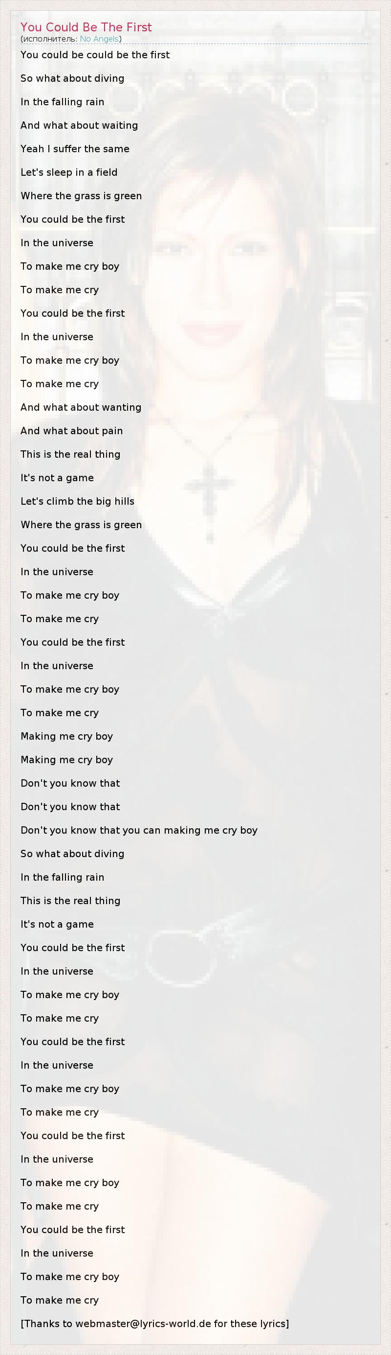 ГлавнаяИсполнителиNo AngelsYou Could Be The First