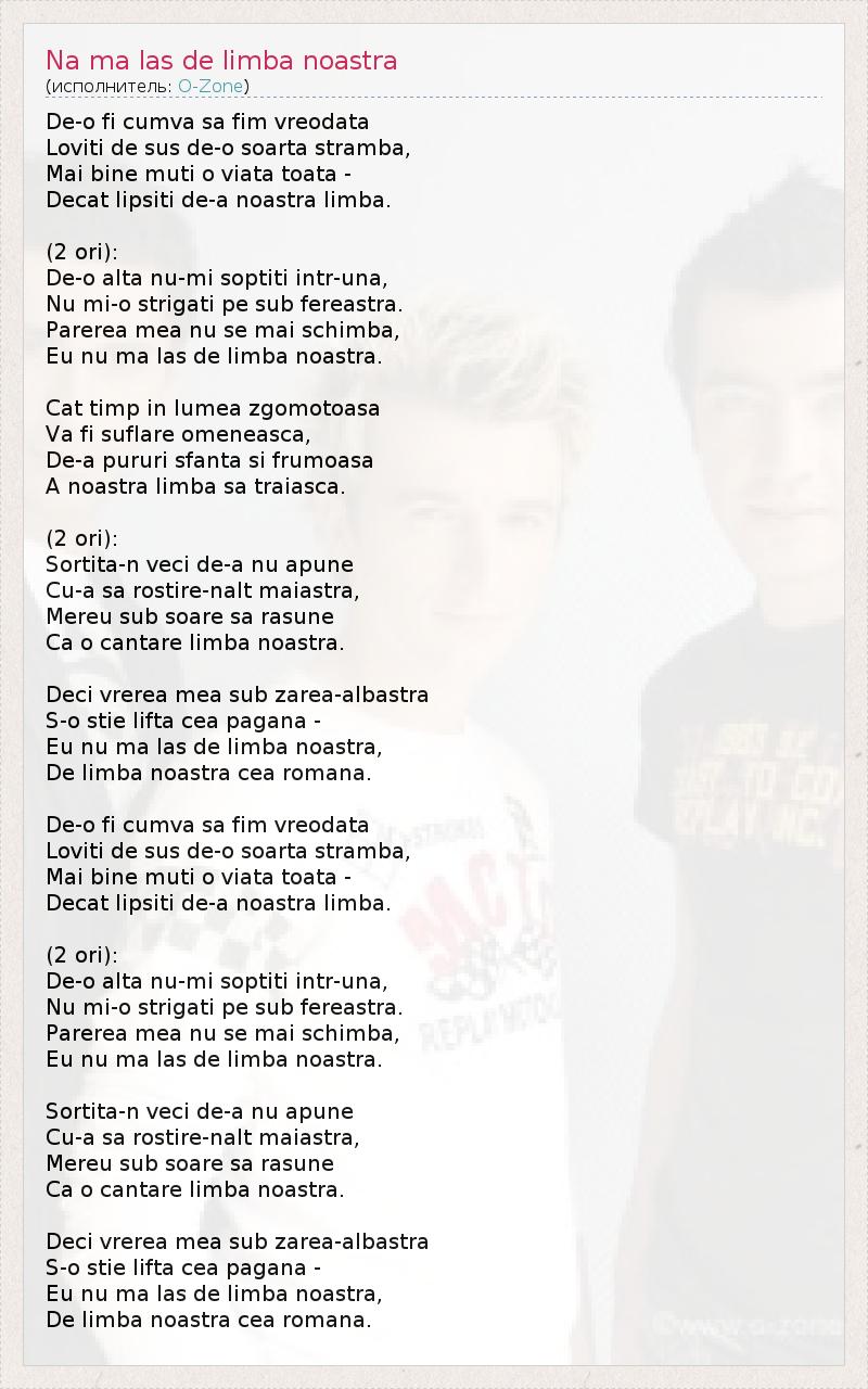 ГлавнаяИсполнителиO-ZoneNa ma las de limba noastra