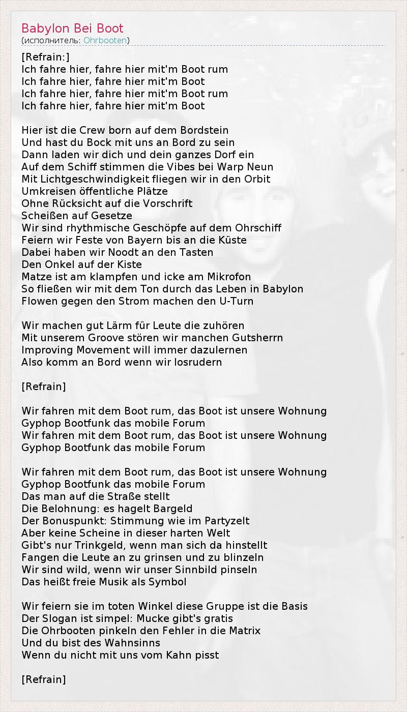 А как ты думаешь, о чем песня "Babylon Bei Boot" ?