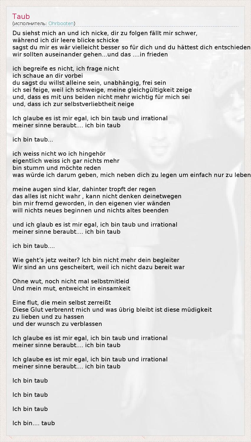 Ich сеи Feige Вейля Ich schweige , Моя gleichgültigkeit zeige