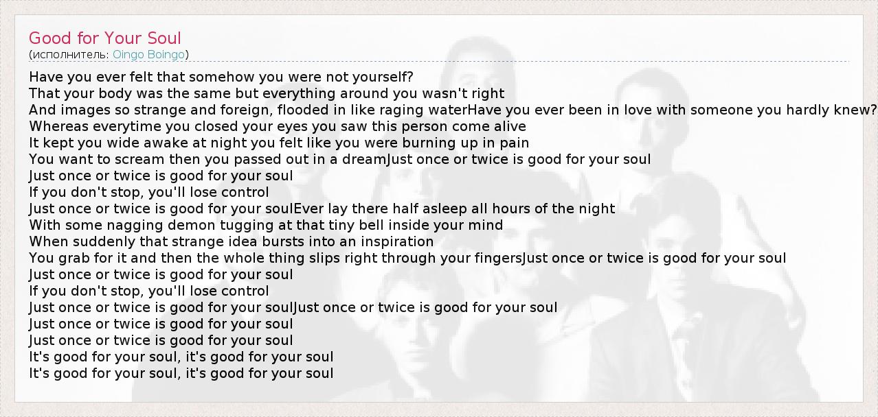 А как ты думаешь, о чем песня "Good for Your Soul" ?
