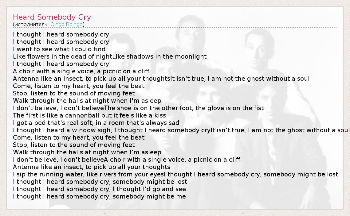 А как ты думаешь, о чем песня "Heard Somebody Cry" ?
