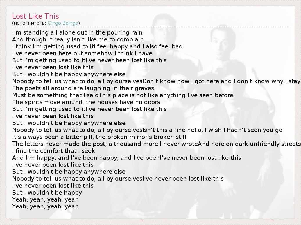 And I'm happy, and I've been happy, and I've beenI've never been lost like this