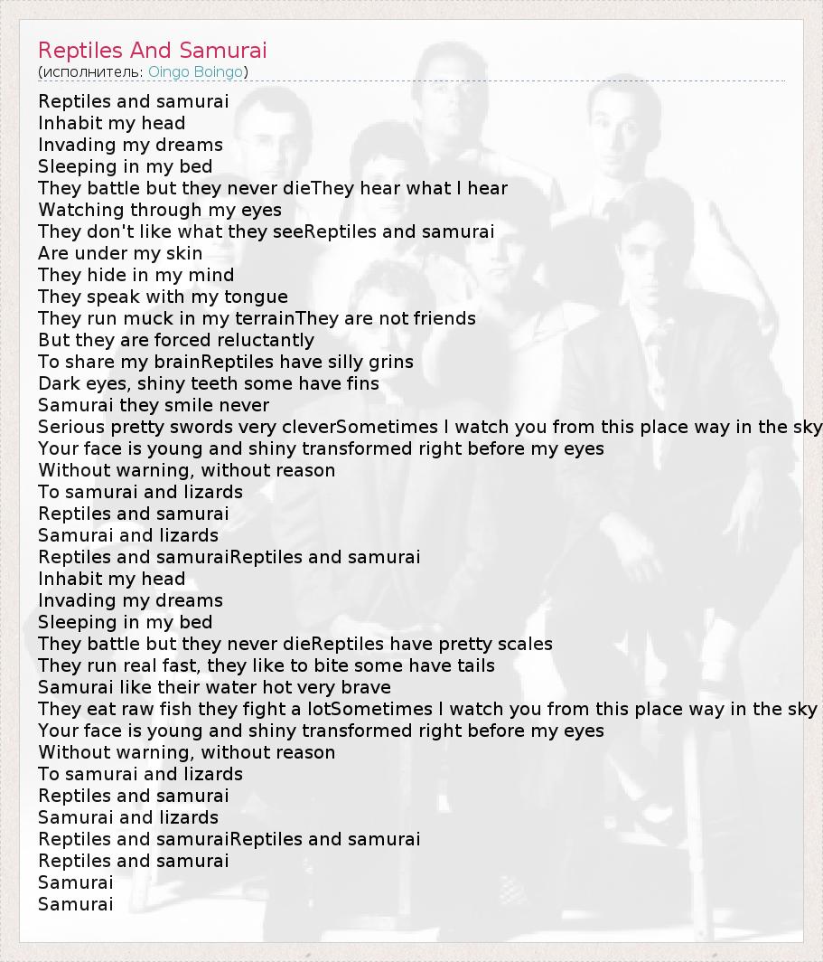 А как ты думаешь, о чем песня "Reptiles And Samurai" ?