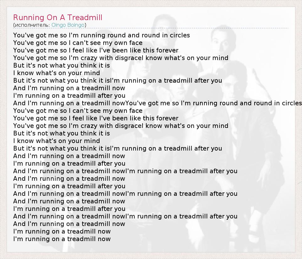 You've got me so I'm running round and round in circles You've got me so I can't see my own face You've got me so I feel like I've been like this forever You've got me so I'm crazy with disgraceI know what's on your mind But it's not what you think it is I know what's on your mind But it's not what you think it isI'm running on a treadmill after you And I'm running on a treadmill now I'm running on a treadmill after you And I'm running on a treadmill nowYou've got me so I'm running round and round in circles You've got me so I can't see my own face You've got me so I feel like I've been like this forever You've got me so I'm crazy with disgraceI know what's on your mind But it's not what you think it is I know what's on your mind But it's not what you think it isI'm running on a treadmill after you And I'm running on a treadmill now I'm running on a treadmill after you And I'm running on a treadmill nowI'm running on a treadmill after you And I'm running on a treadmill now I'm running on a treadmill after you And I'm running on a treadmill nowI'm running on a treadmill after you And I'm running on a treadmill now I'm running on a treadmill after you And I'm running on a treadmill nowI'm running on a treadmill after you And I'm running on a treadmill now I'm running on a treadmill now I'm running on a treadmill now