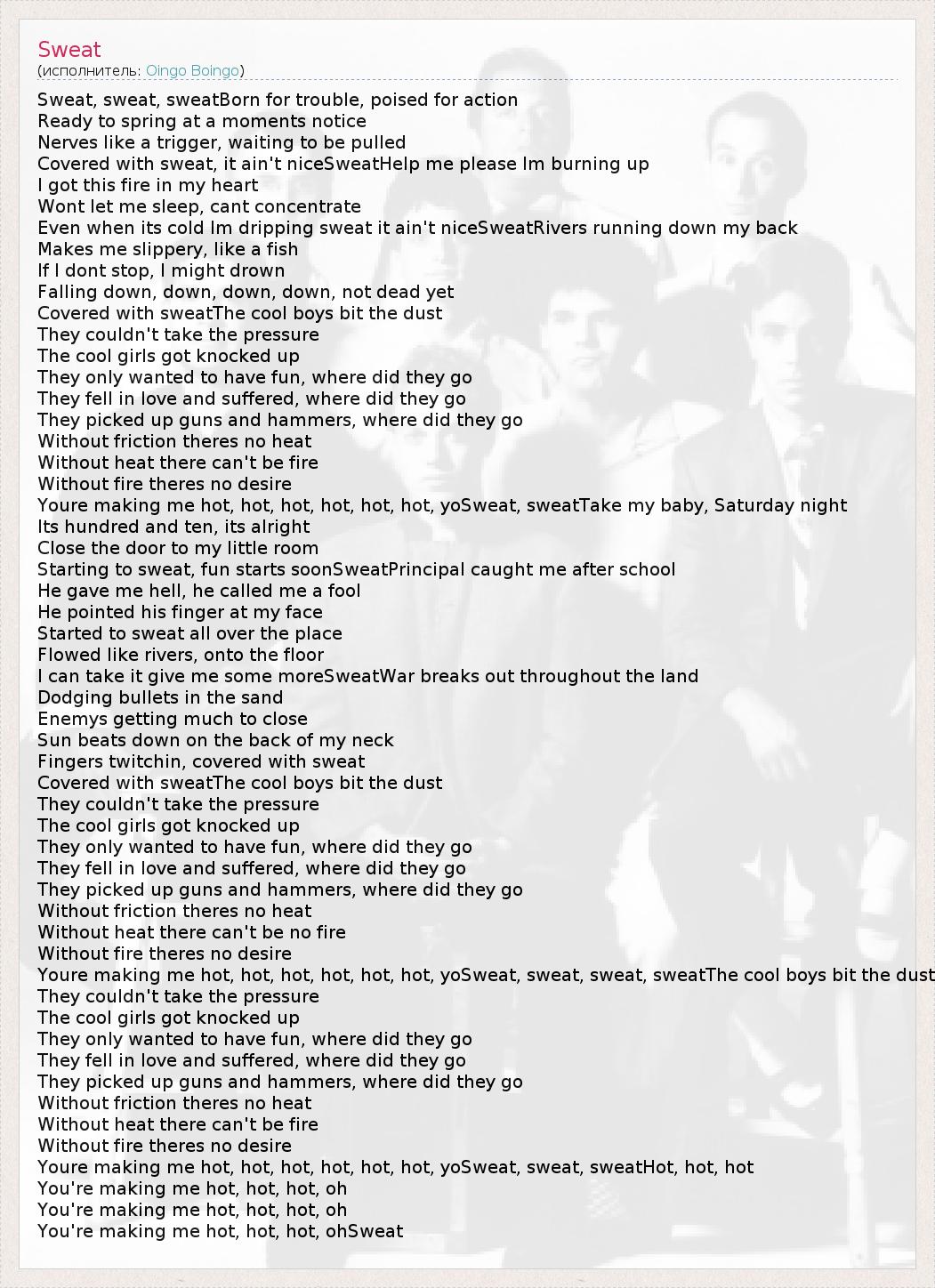 Youre making me hot, hot, hot, hot, hot, hot, yoSweat, sweat, sweatHot, hot, hot
