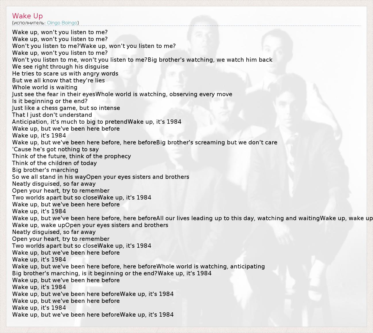 Wake up, but we've been here beforeWake up, it's 1984