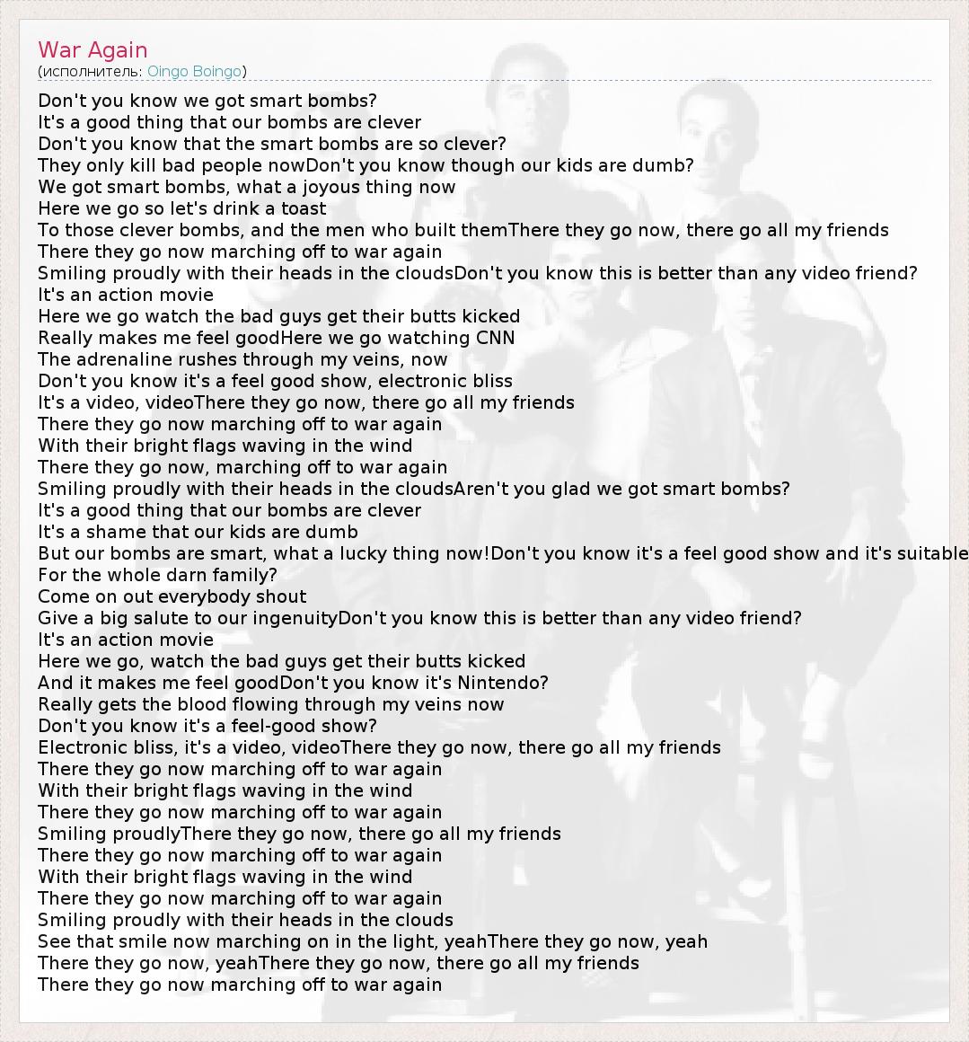 But our bombs are smart, what a lucky thing now!Don't you know it's a feel good show and it's suitable