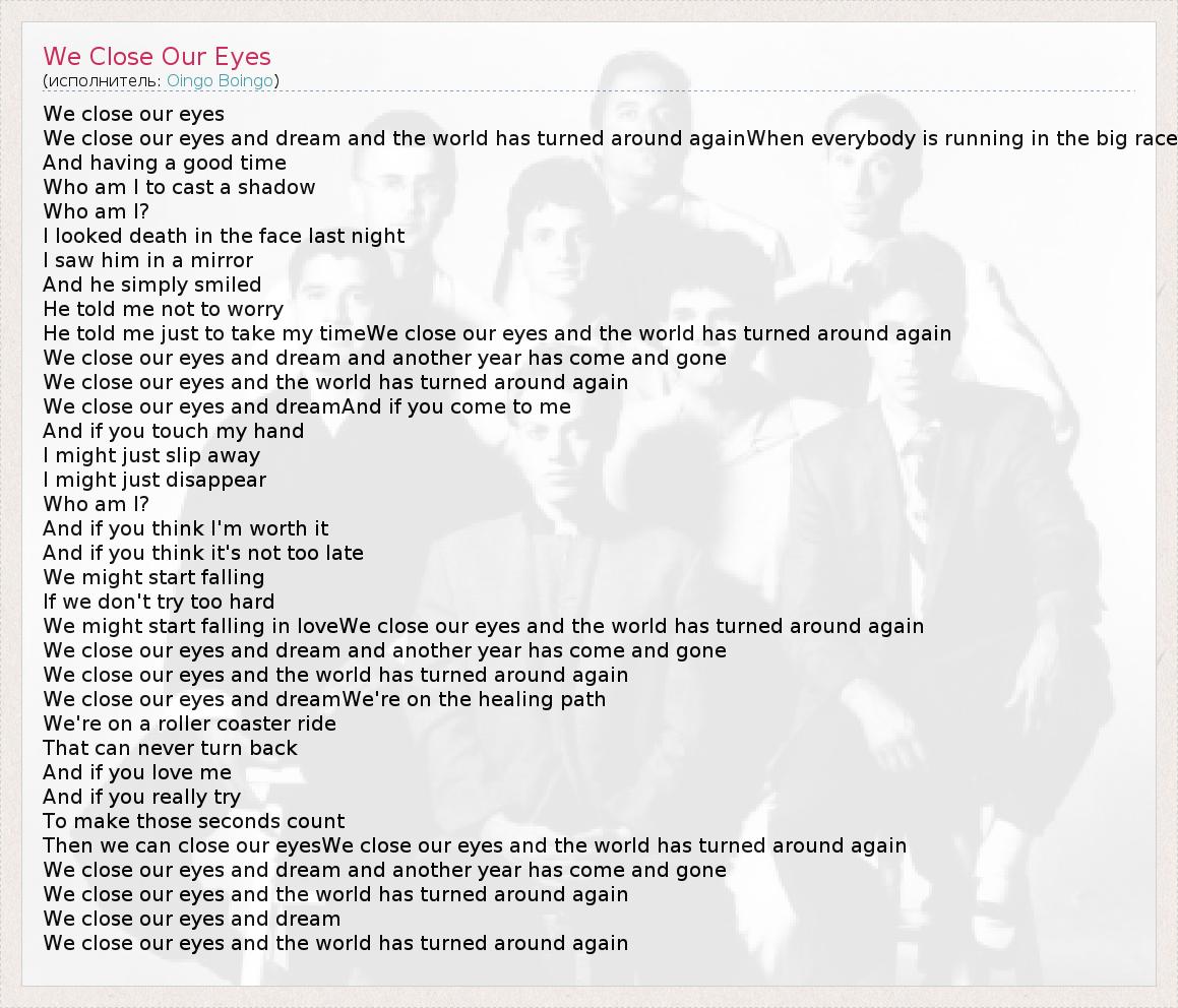 А как ты думаешь, о чем песня "We Close Our Eyes" ?