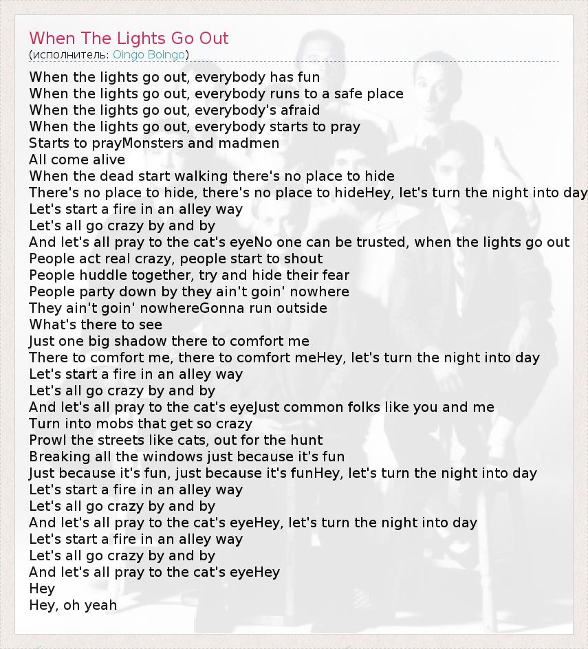 А как ты думаешь, о чем песня "When The Lights Go Out" ?