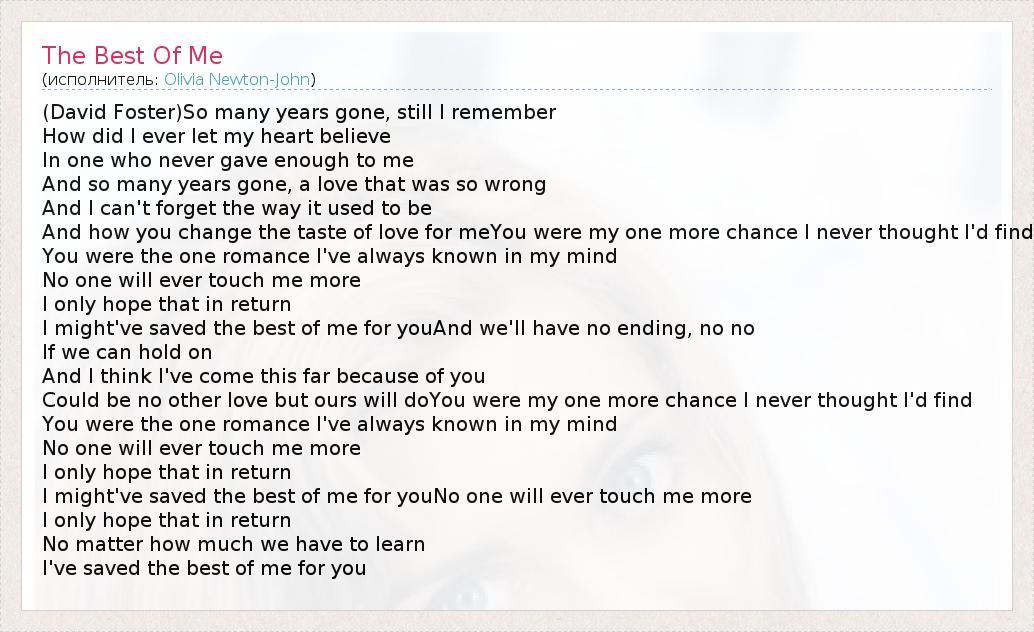 А как ты думаешь, о чем песня "The Best Of Me" ?