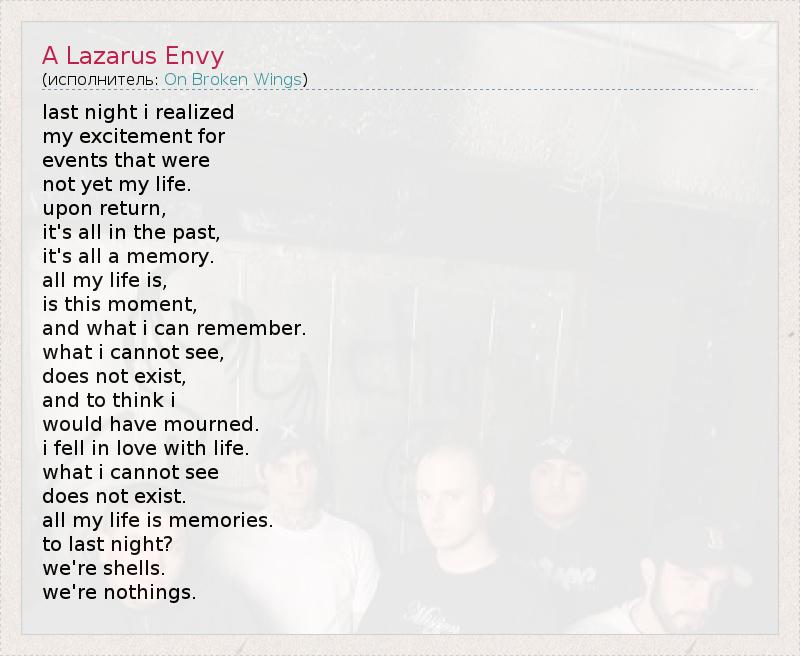 А как ты думаешь, о чем песня "A Lazarus Envy" ?