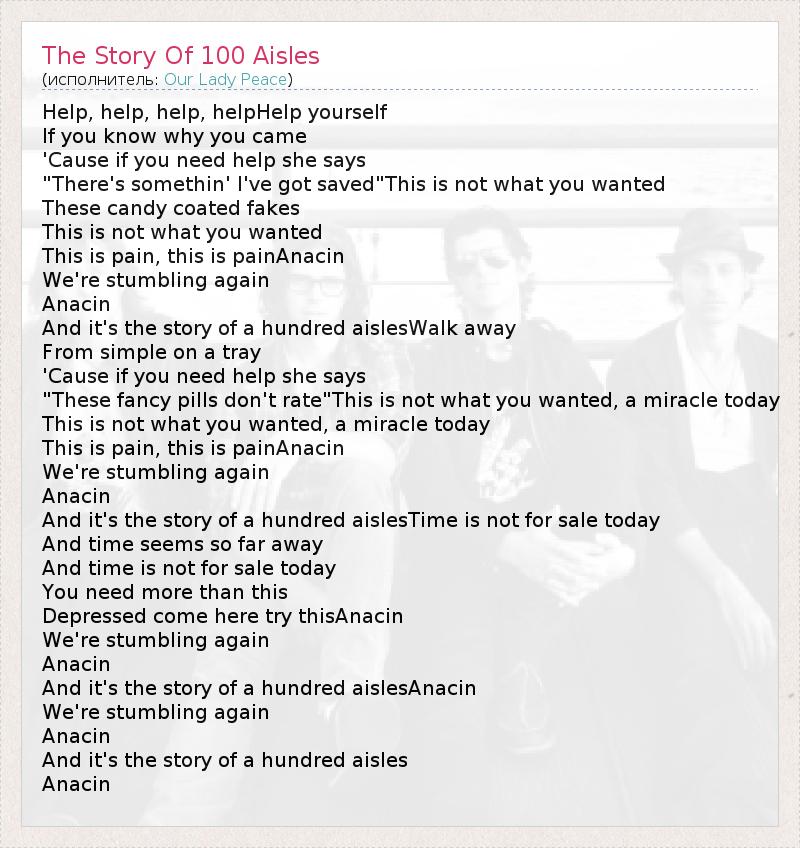 А как ты думаешь, о чем песня "The Story Of 100 Aisles" ?