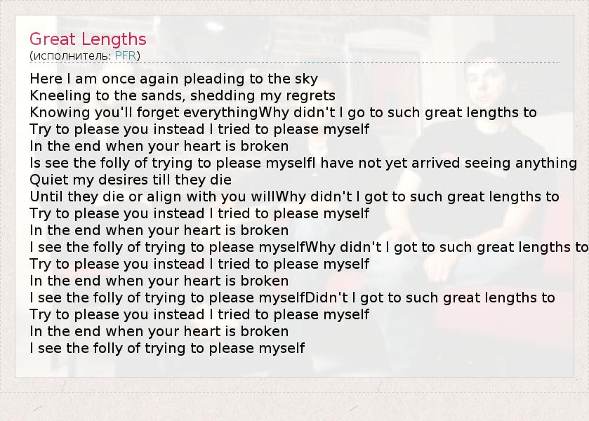 А как ты думаешь, о чем песня "Great Lengths" ?