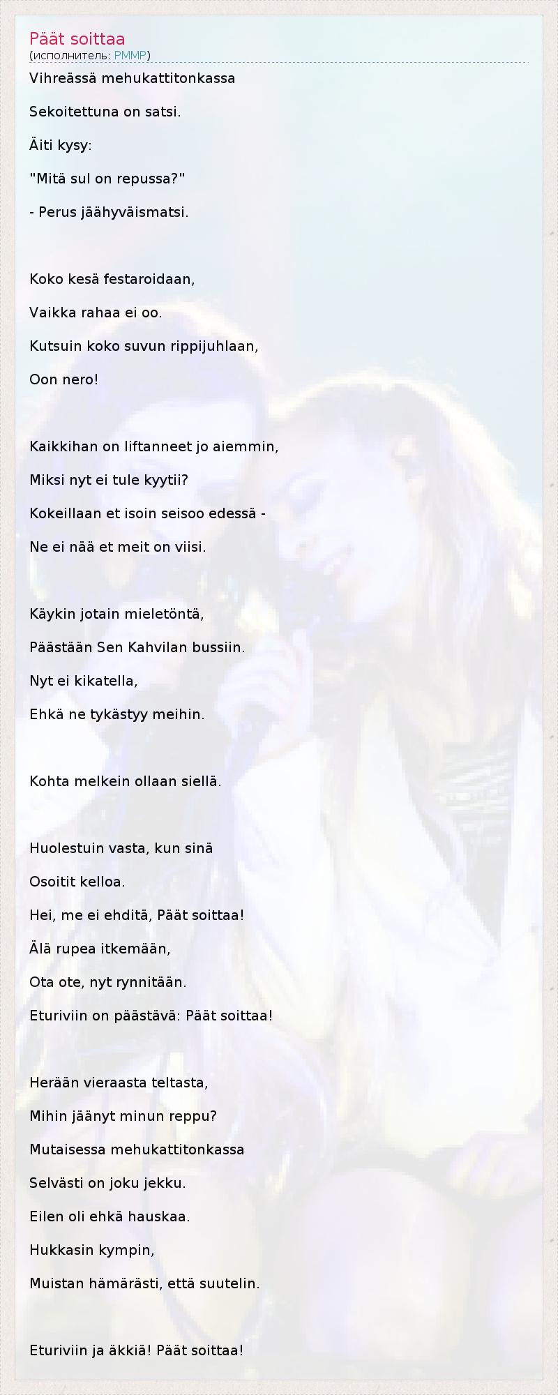 А как ты думаешь, о чем песня "Päät soittaa" ?