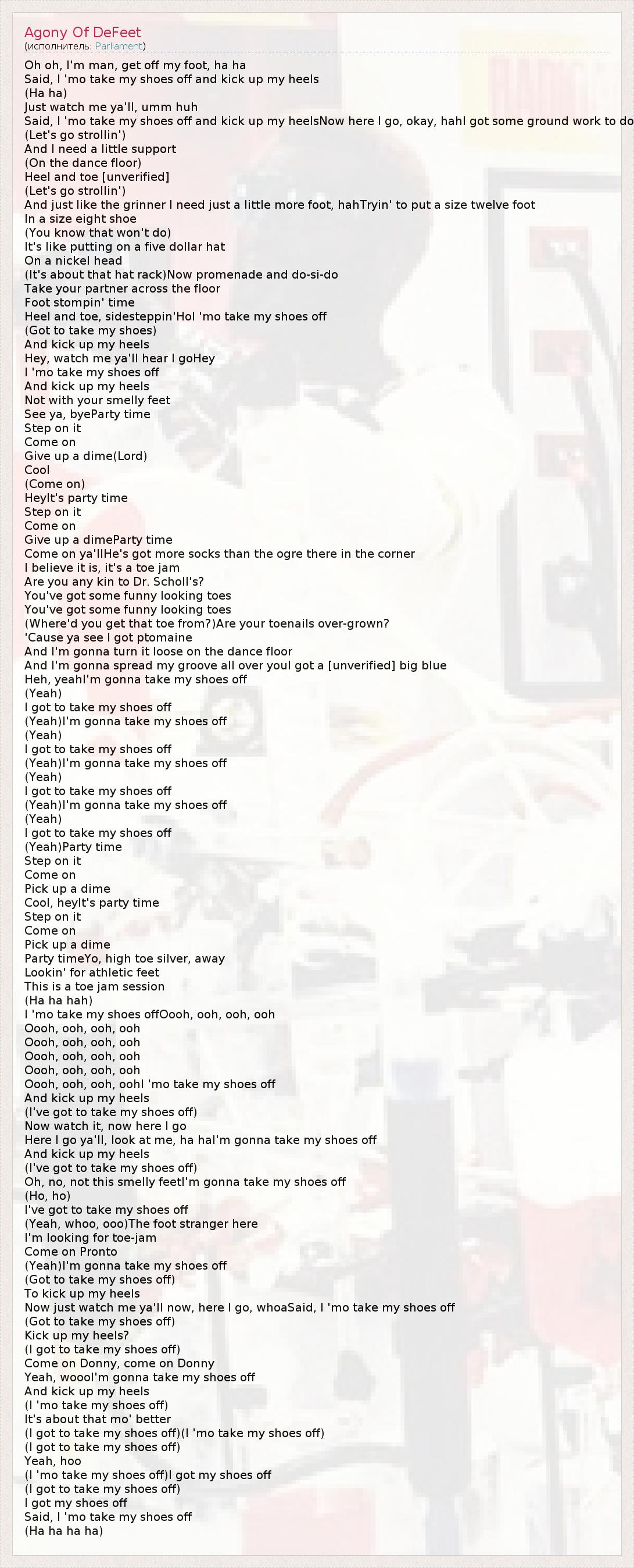 А как ты думаешь, о чем песня "Agony Of DeFeet" ?