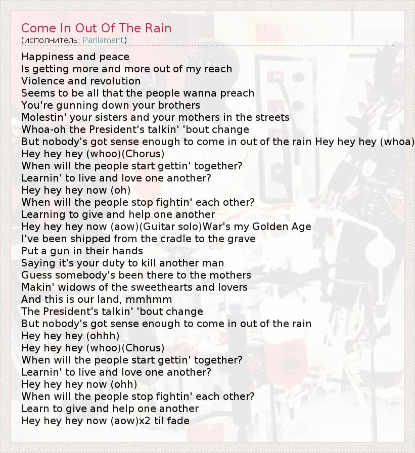 А как ты думаешь, о чем песня "Come In Out Of The Rain" ?