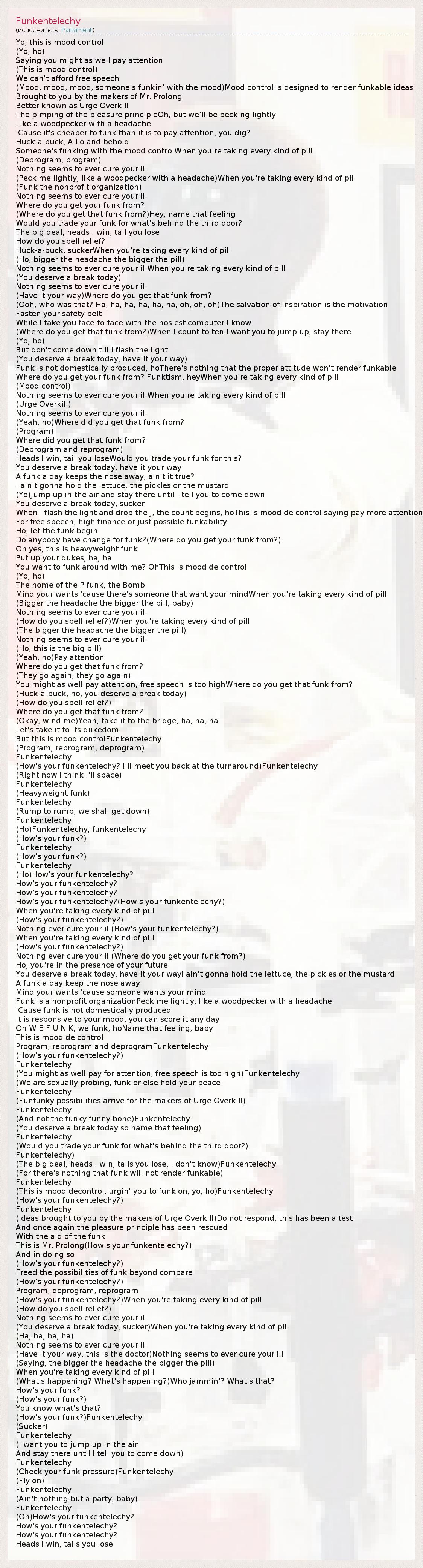 (This is mood decontrol, urgin' you to funk on, yo, ho)Funkentelechy