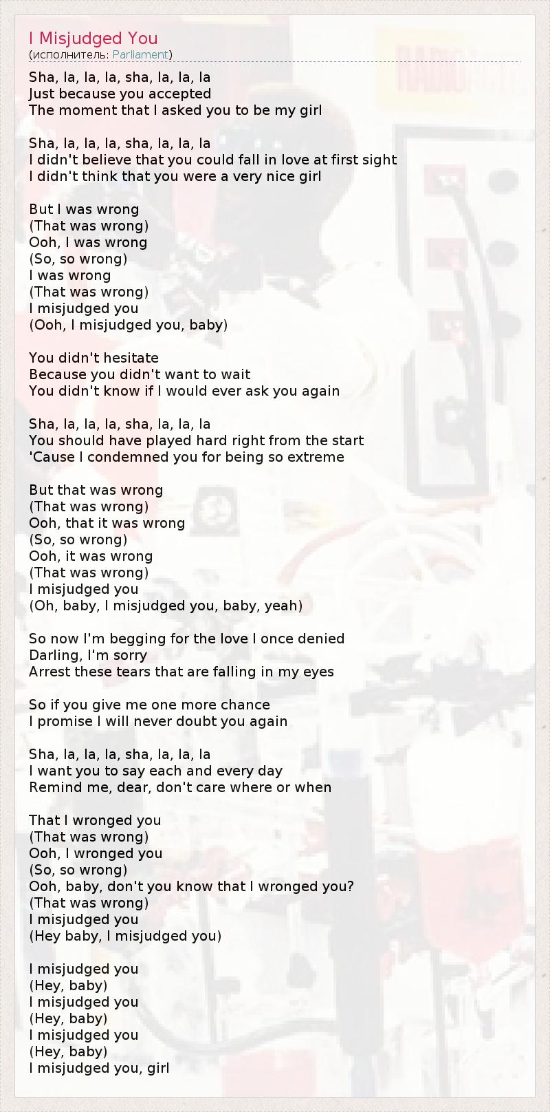 А как ты думаешь, о чем песня "I Misjudged You" ?