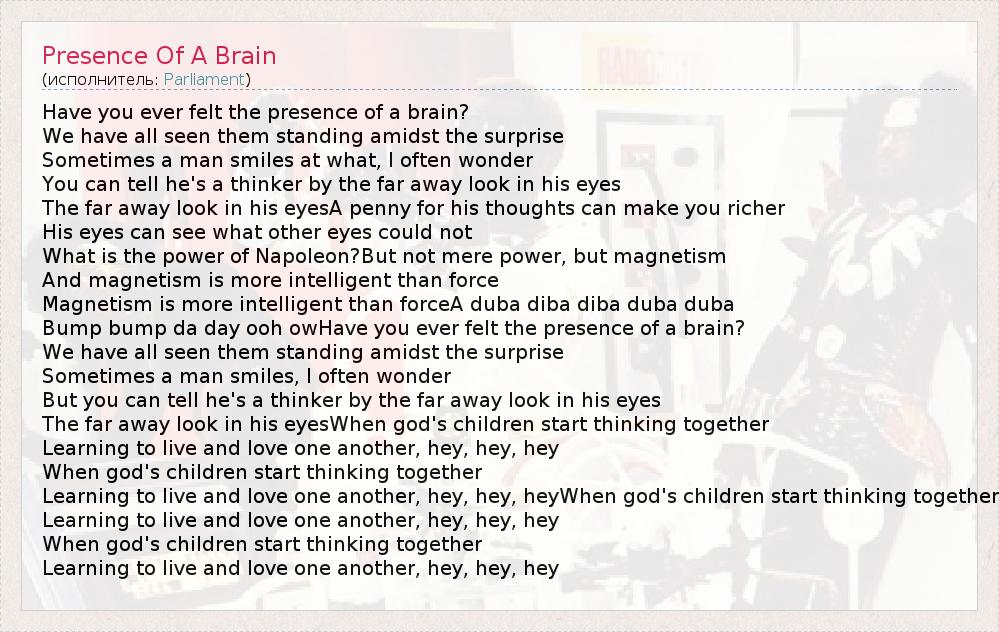 А как ты думаешь, о чем песня "Presence Of A Brain" ?