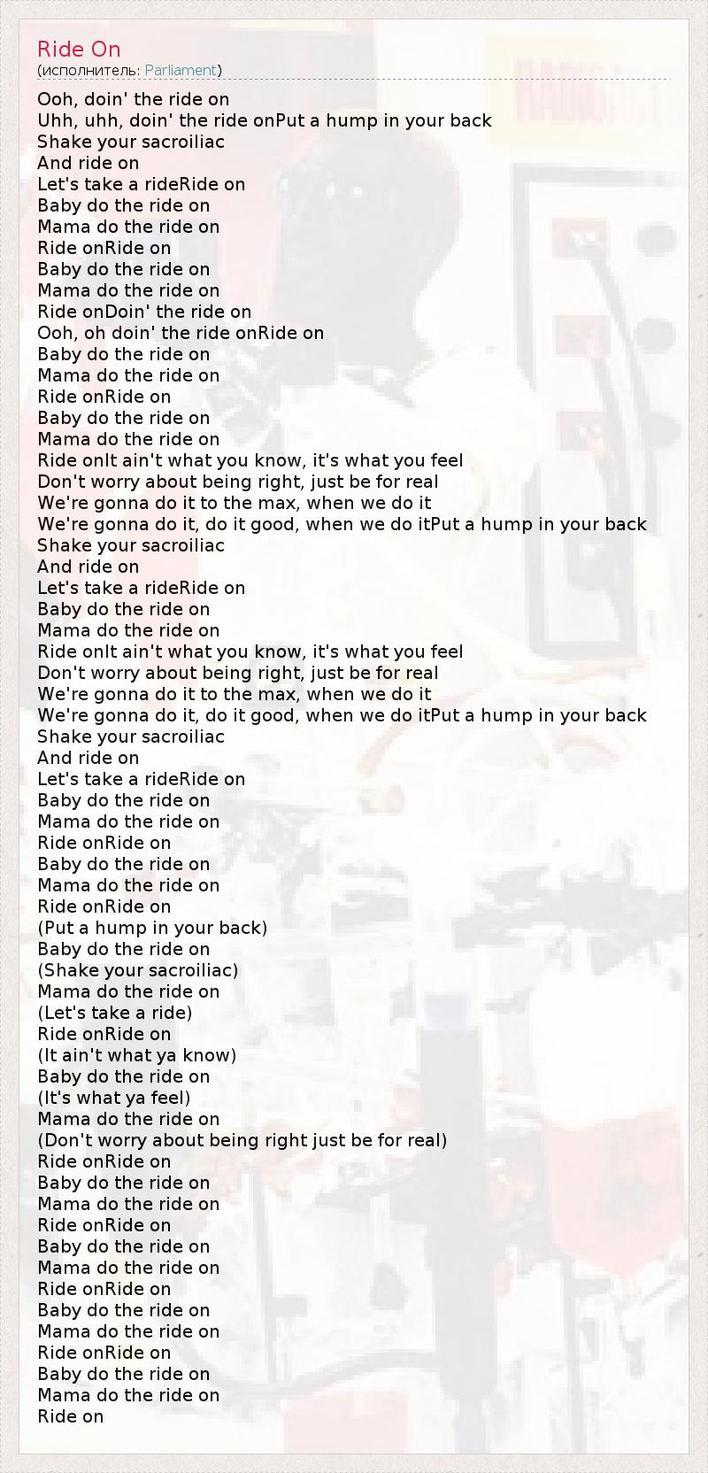 Uhh, uhh, doin' the ride onPut a hump in your back