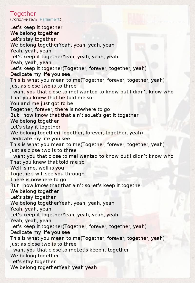 Let's keep it togetherYeah, yeah, yeah, yeah