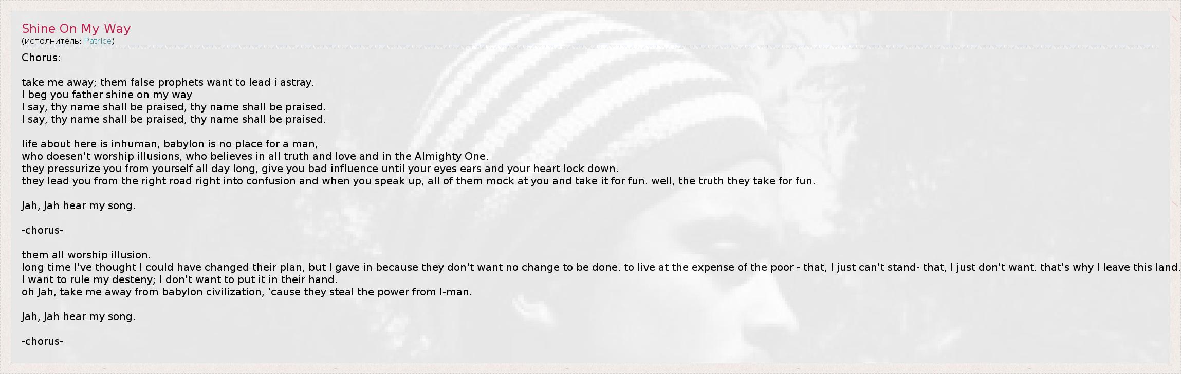 oh Jah, take me away from babylon civilization, 'cause they steal the power from I-man.