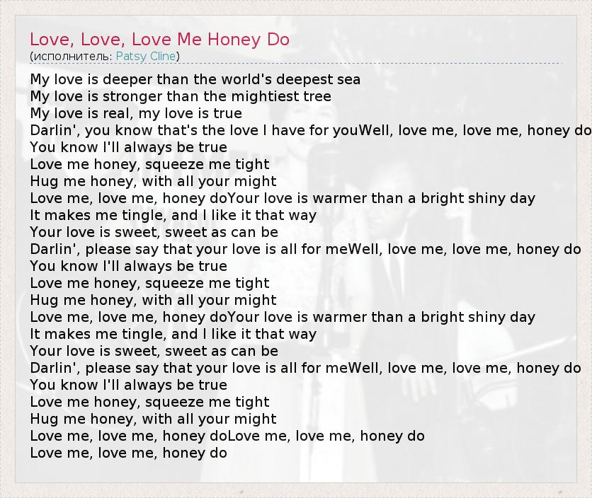 ГлавнаяИсполнителиPatsy ClineLove, Love, Love Me Honey Do