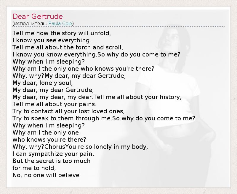 А как ты думаешь, о чем песня "Dear Gertrude" ?
