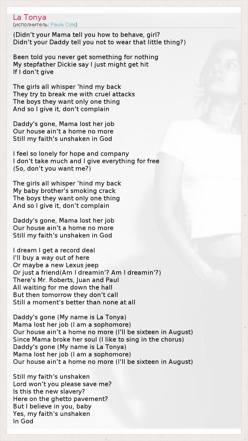 Daddy's gone (My name is La Tonya)