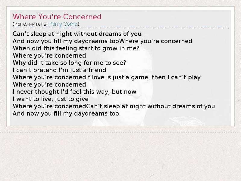 А как ты думаешь, о чем песня "Where You're Concerned" ?