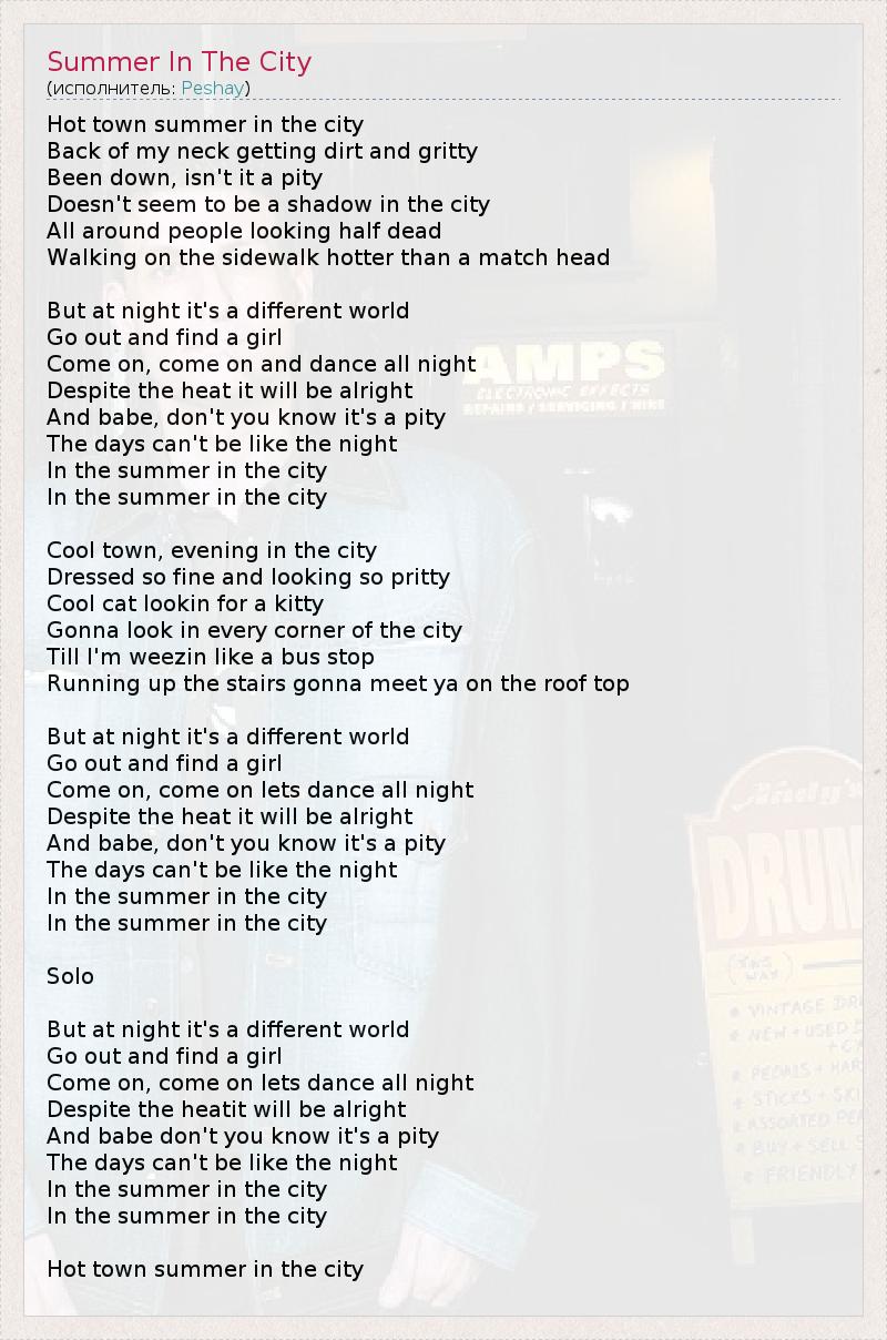 А как ты думаешь, о чем песня "Summer In The City" ?