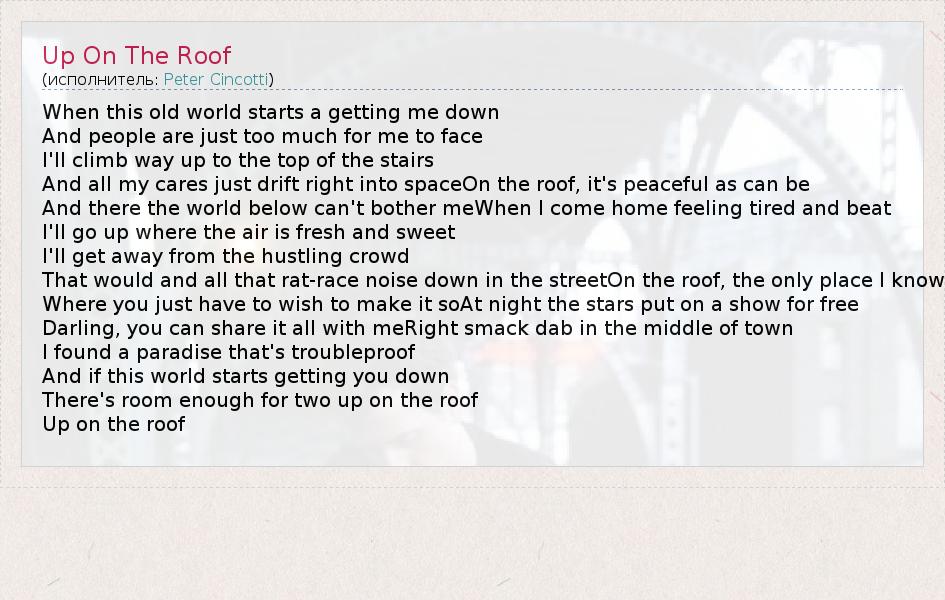 А как ты думаешь, о чем песня "Up On The Roof" ?
