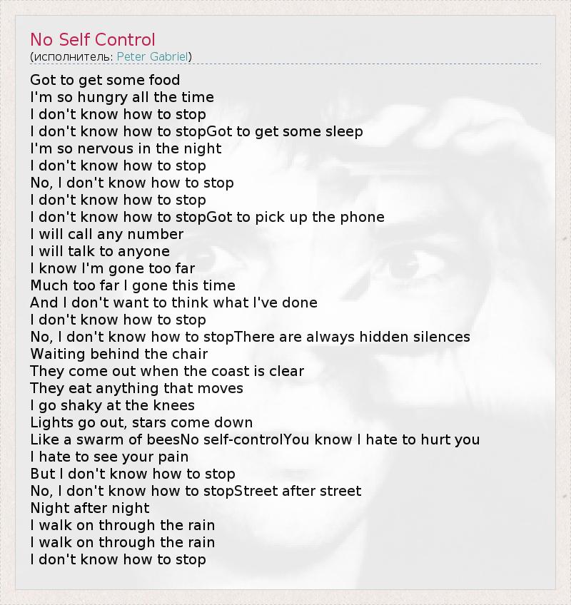 Like a swarm of beesNo self-controlYou know I hate to hurt you
