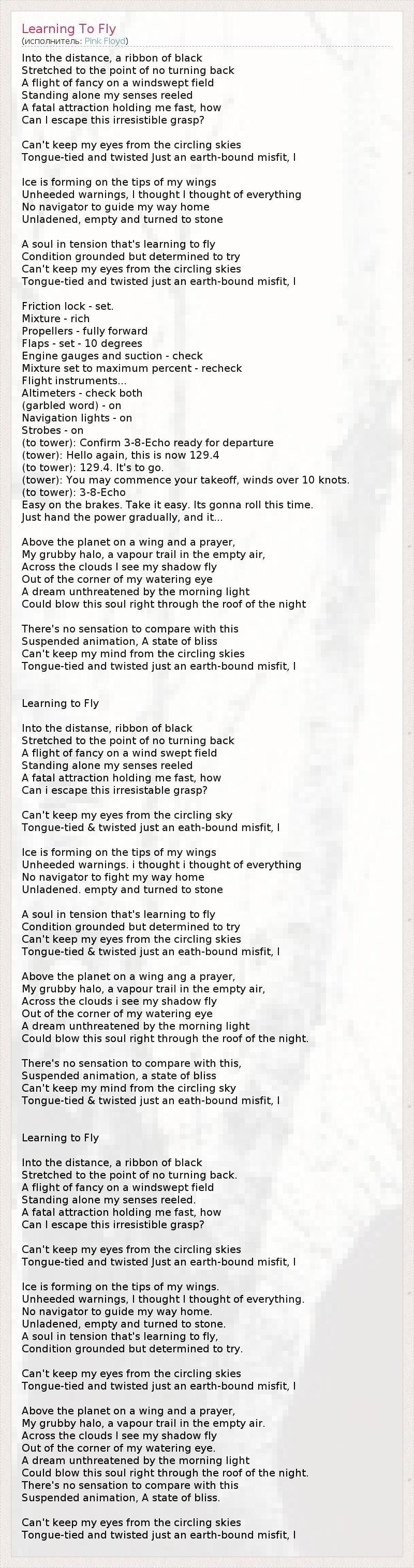 Учусь летать (перевод Дмитрий Попов из Новокузнецка)